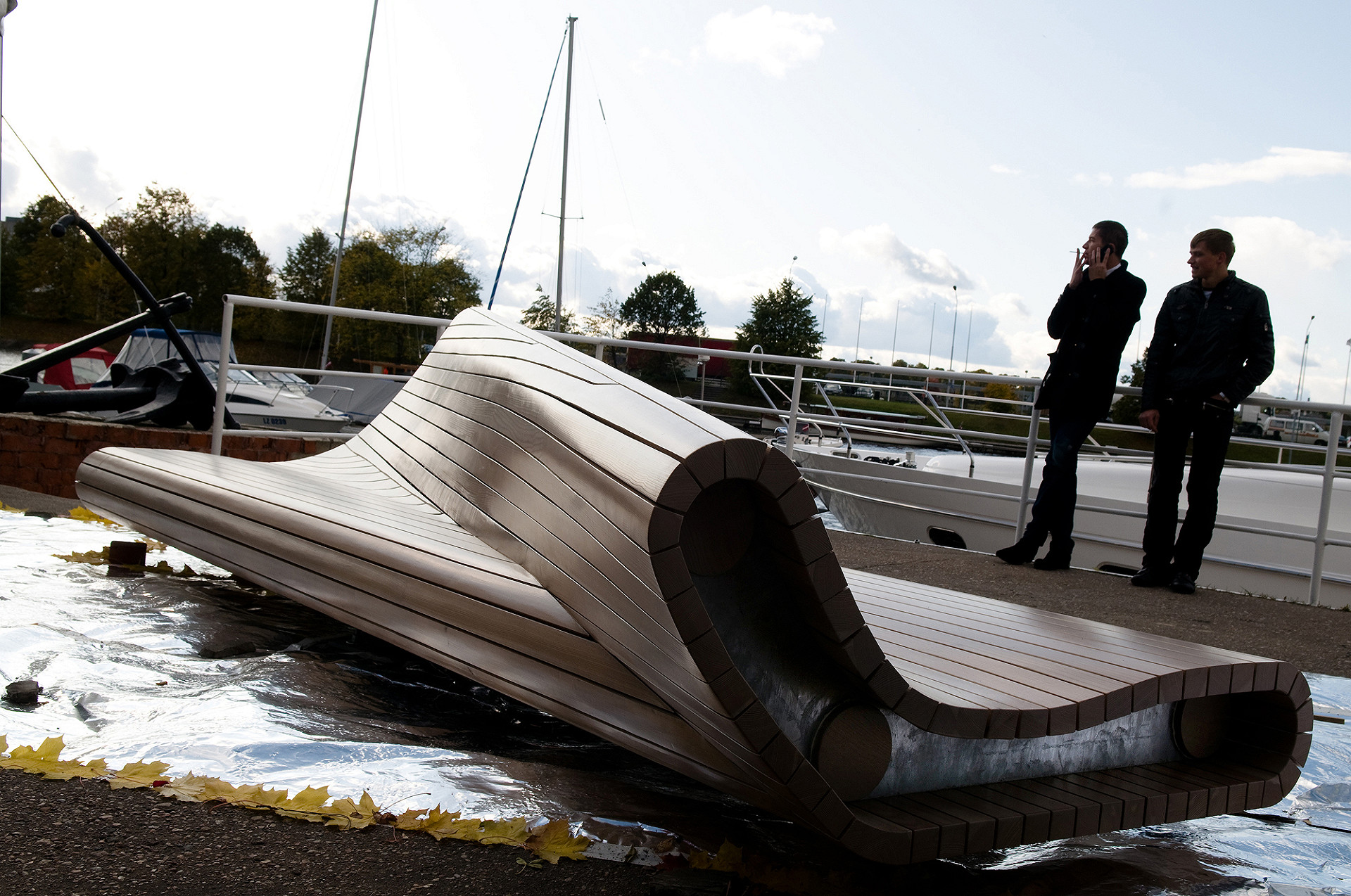 Пластичная скамья в виде гребного винта спроектирована для Рижского яхтенного клуба «Андрейоста» и состоит из деревянных реек, прикрученных к металлическому каркасу. Её скульптурная форма имеет одну общую спинку и две поверхности для сидения, ориентированные на противоположенные стороны. Основанием служит диск с подшипником для вращения, позволяющий крутить винт то в одну, то в другую сторону к водному пейзажу.